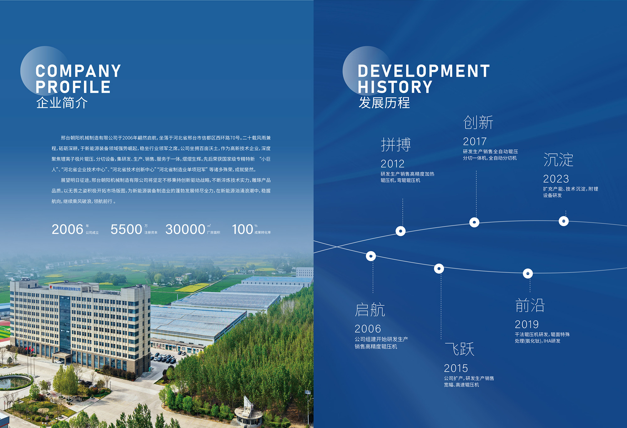 邢臺(tái)朝陽機(jī)械制造有限公司是新能源裝備領(lǐng)域的璀璨之星,位于河北省邢臺(tái)市信都區(qū)會(huì)寧鎮(zhèn)(邢臺(tái)會(huì)寧綜合物流聚集地) 70 號(hào),自2006 年成立以來,歷經(jīng) 20 年砥礪奮進(jìn),已成長為新能源裝備領(lǐng)域的行業(yè)領(lǐng)軍者。公司占地 100 余畝,是集鋰離子電池極片... [更多>>]